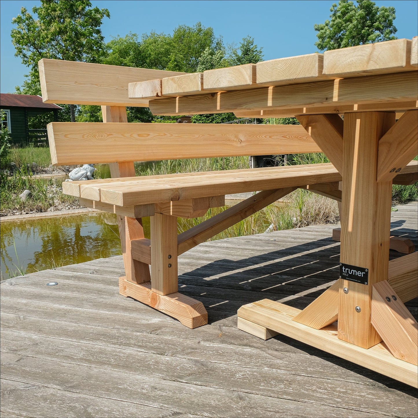 Per un'accogliente riunione con la famiglia e gli amici all'aria aperta. Il set in larice massiccio Trumer HOLZGEFÜHL invita a soffermarsi.