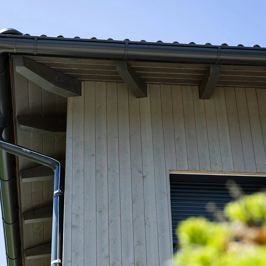 La facciata in larice risplende fin dal primo giorno con la sua elegante patina nelle più belle tonalità dell'argento.