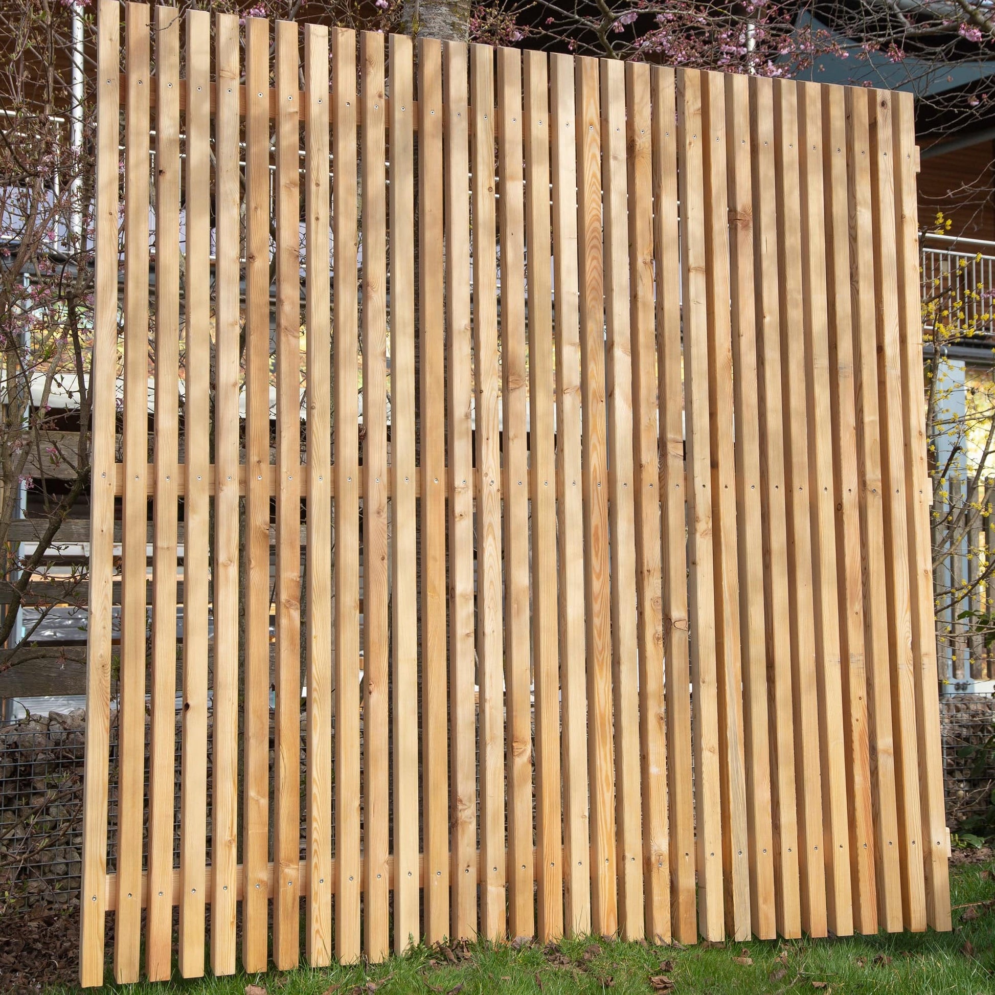 Ein Sichtschutz aus Lärche als gelungener Schutz deiner Privatsphäre. Zäune und Sichtschutz aus Holz sind eine optisch sehr gefällige und pflegeleichte Alternative zu Hecken.
